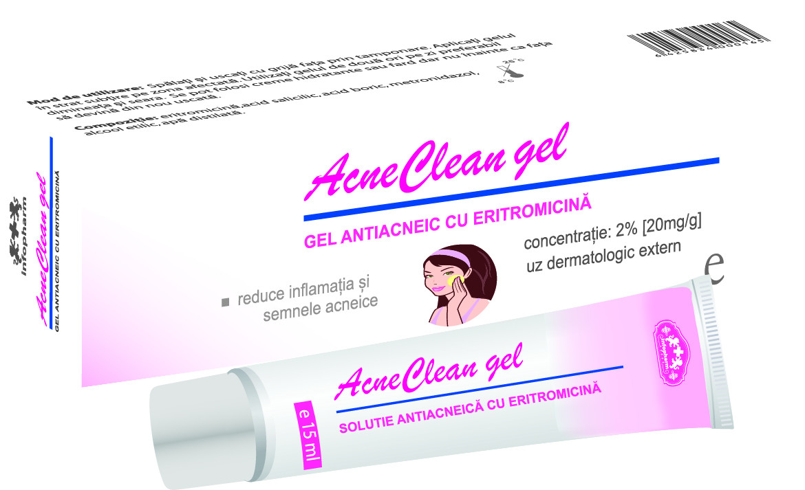 Acneea îți afectează încrederea? AcneClean Gel este soluția dermatologic testată care acționează rapid împotriva coșurilor și inflamațiilor! Formula sa avansată, pe bază de eritromicină, combate eficient bacteriile responsabile de acnee, reducând roșeața și prevenind apariția noilor erupții.